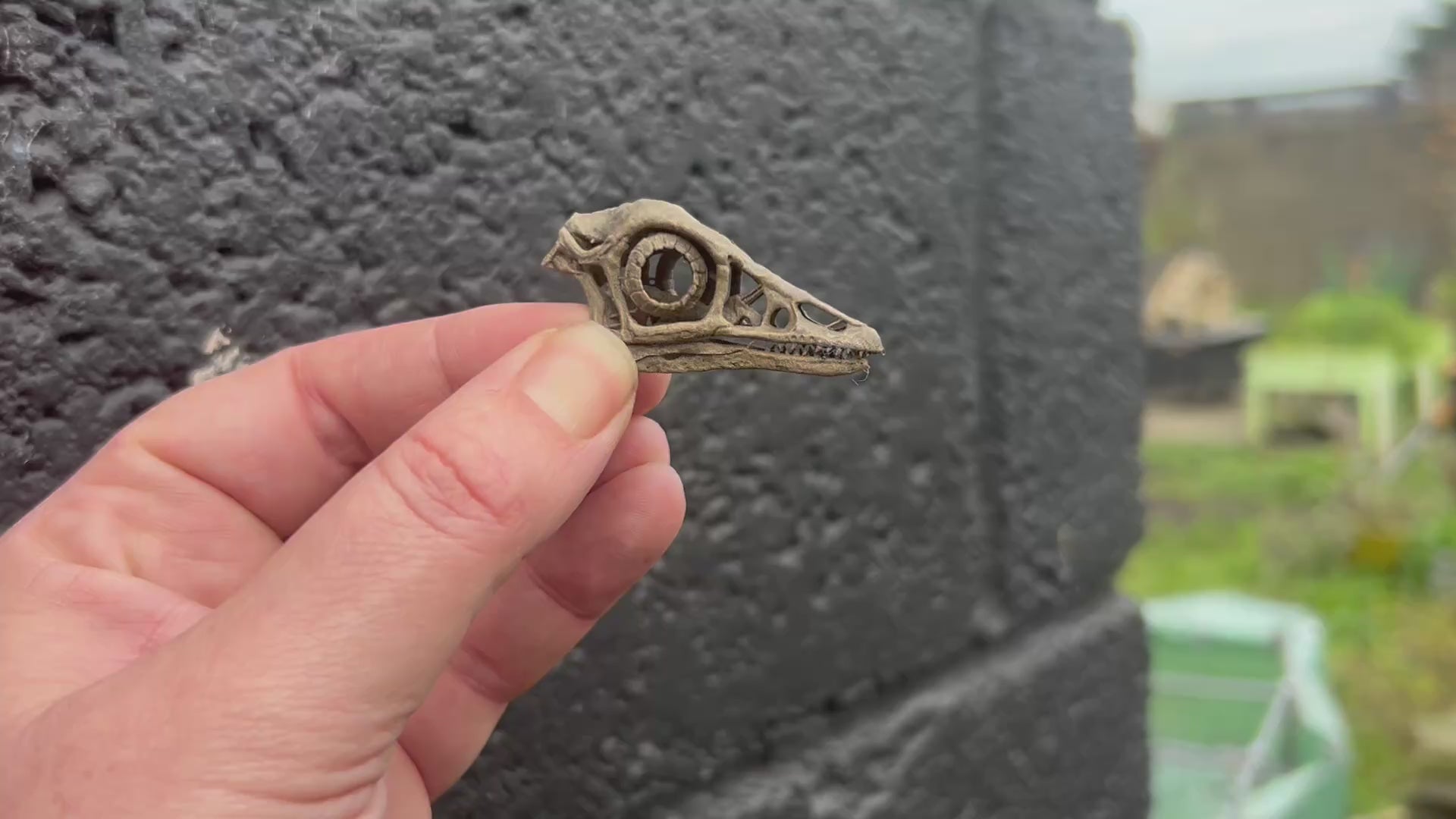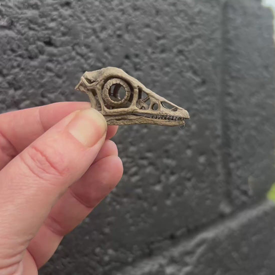 This piece is a hand painted resin Archaeopteryx lithographica skull. Digitally sculpted in ZBrush and 3D printed, its jaws are closed.